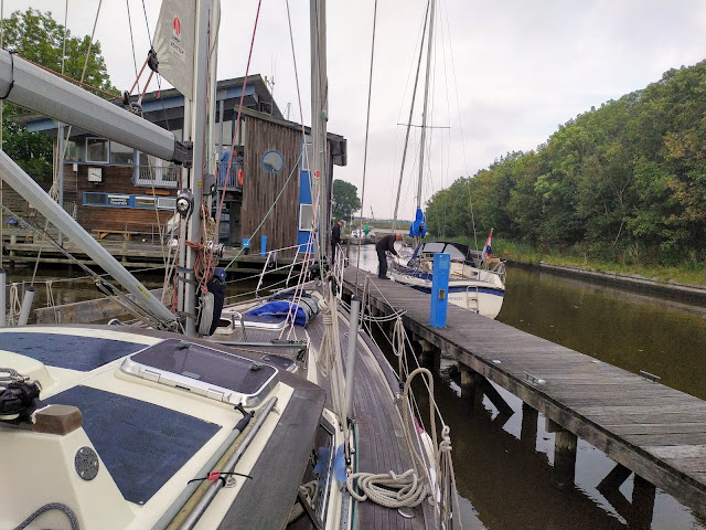 Fick en långsidesförtöjning. Inte perfekt plats med tanke på vindriktning. De sade i Marina Stavoren Binnenhaven att det var den sista platsen de hade. Det såg inte direkt ut så när man tittade runt i hamnen men det hade kanske med vattendjupet att göra.